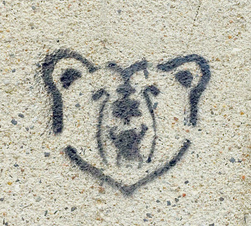 Bärenschnute auf Bunkerbeton in der Reinhardtstrasse, Graffito by XOOOOX, Foto: Martina Gaul