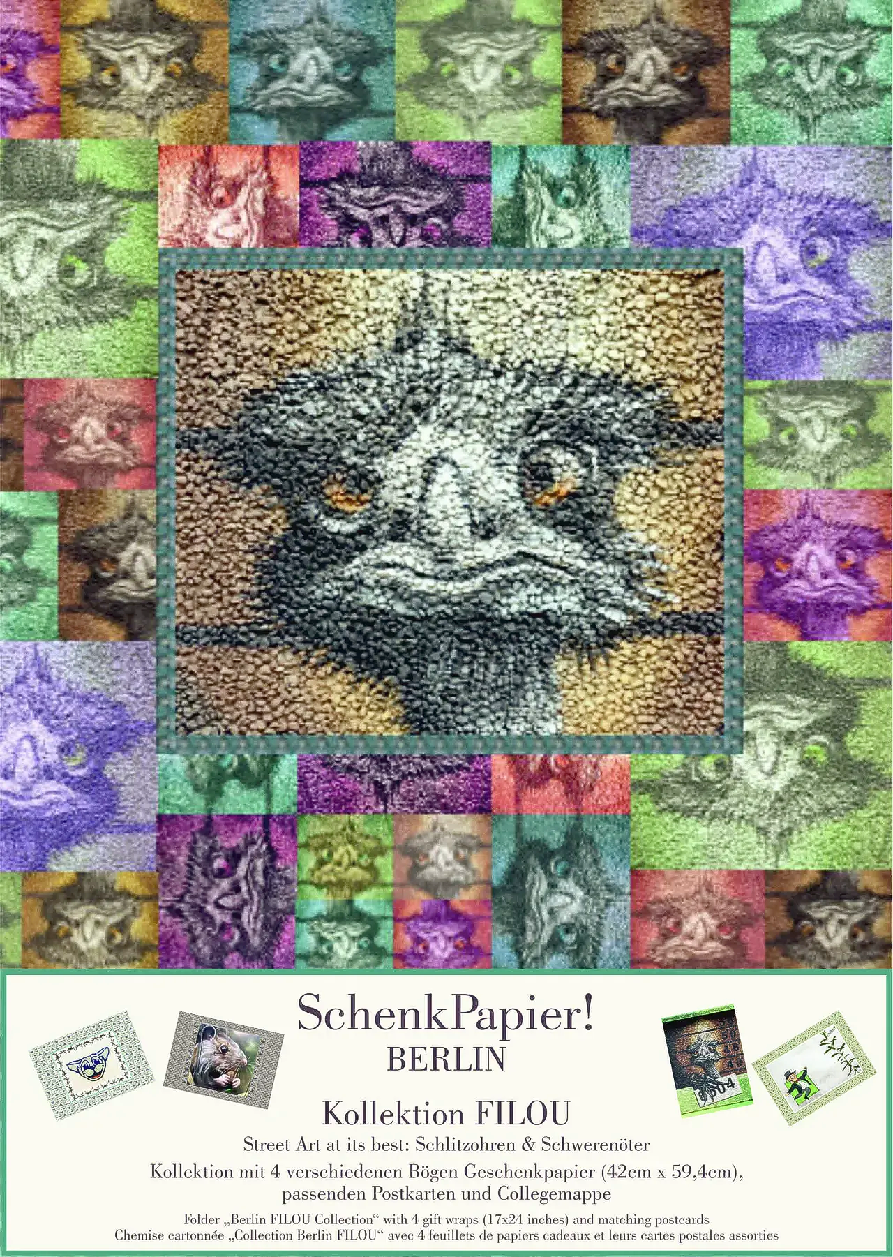 Die Collegemappe FILOU mit je 4 Postkarten und 4 Bögen SchenkPapier!, Format 42 x 59,4 cm, 100gr Papier, matt
